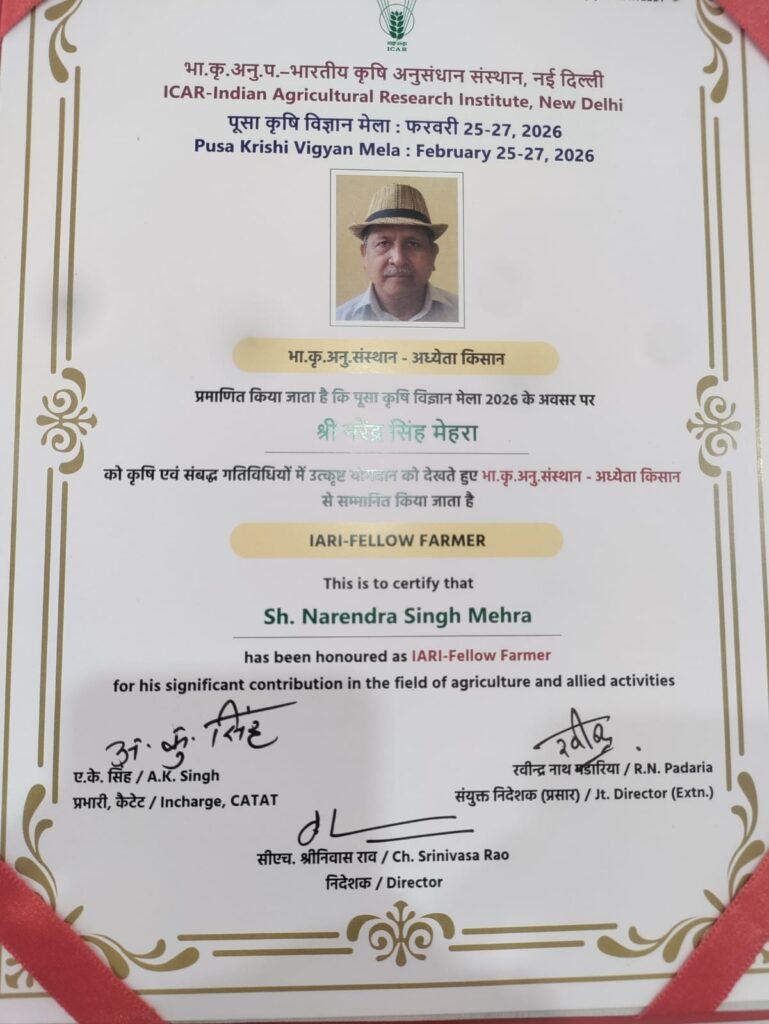 पुसा में मिला यह सम्मान एक बार फिर यह सिद्ध करता है कि नवाचारी किसान भारतीय कृषि के भविष्य को नई दिशा देने में अहम भूमिका निभा रहे हैं।