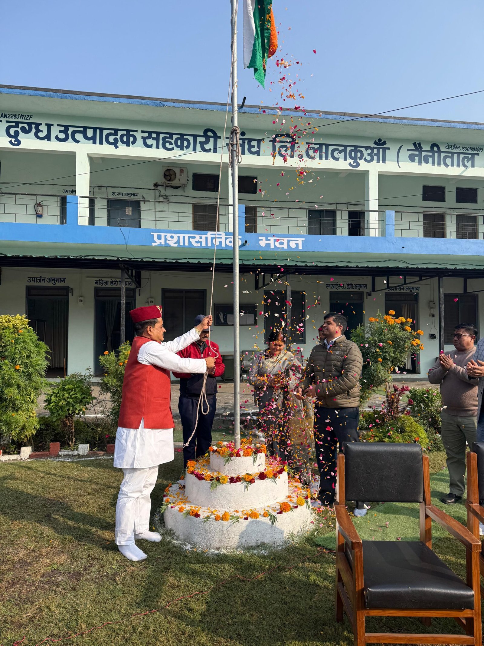 The 77th Republic Day was celebrated with enthusiasm, pride and patriotic spirit at Nainital Aanchal Milk Producers Cooperative Union Limited. The National Flag was hoisted at the administrative premises by Union Chairman Mr. Mukesh Bora, followed by the National Anthem.